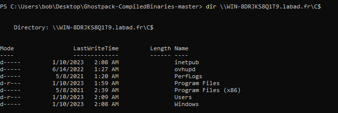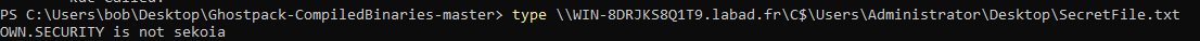 type \\WIN-8DRJKS8Q1T9.labad.fr\C$\Users\Administrator\Desktop\SecretFile.txt