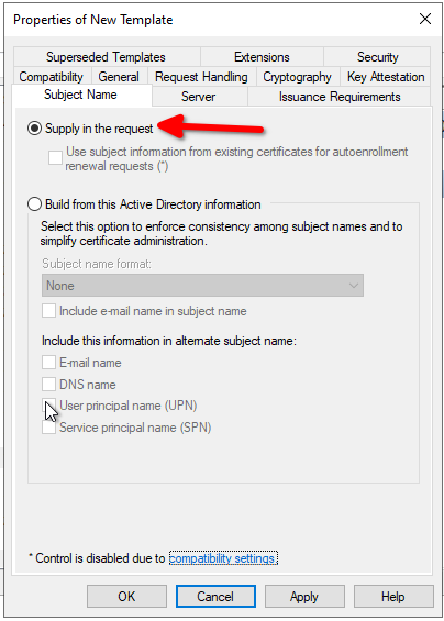 Misconfigured Certificate Templates - Allow requesters to specify a SAN